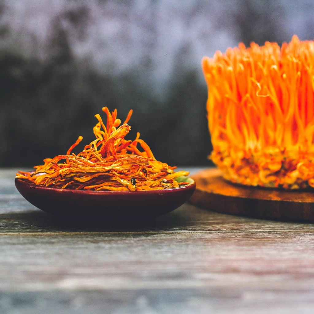 冬虫夏草 (60%)、霊芝 (20%)、党参 (18%)、ステビア (2%)厳選された天然素材のみを使用し、それぞれのハーブが持つ本来の力を引き出します。カフェインフリーで、いつでも安心して召し上がれます。自然の恵みが凝縮された一杯は、心と体のバランスを整え、日々の活力をサポートします。