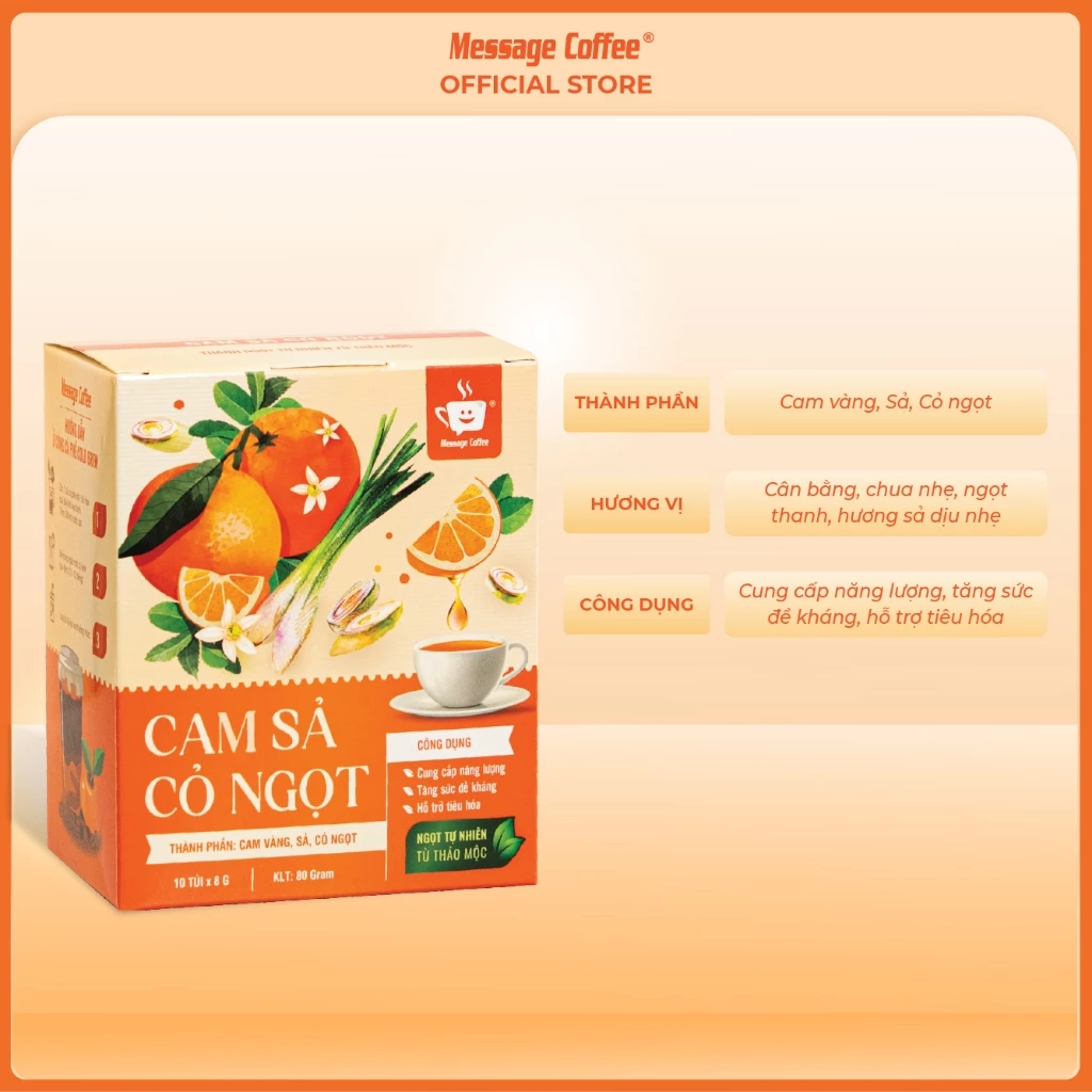 Message Coffee Orange Lemongrass Stevia Tea - Boost Energy, Immunity, Stress Relief (10 bags x 8g)