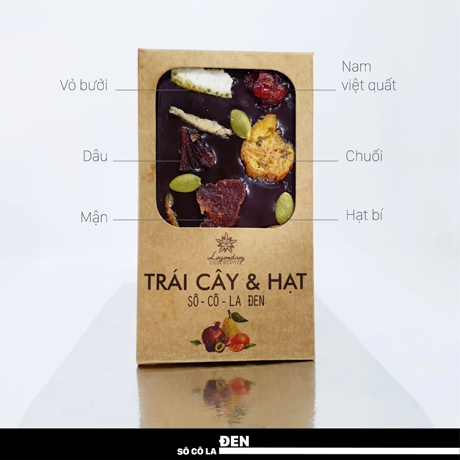 Legendary Chocolatier 27g Dark Chocolate Bar with Mixed Dried Fruits & Nuts - Sweet & Tangy Vietnamese Snack