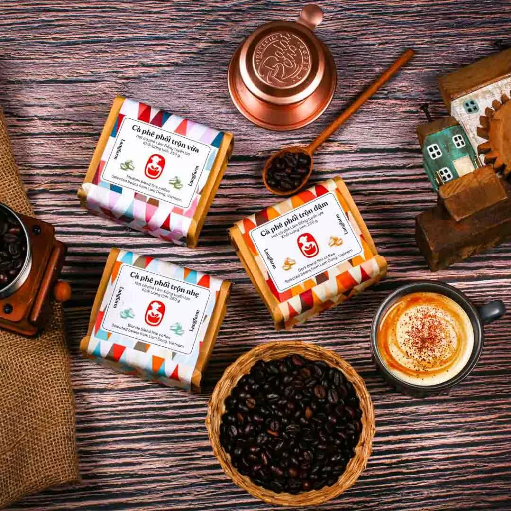 Langfarmの「ベトナムスペシャルティ純粋焙煎コーヒー粉」は、ベトナム南部の美しいリムドン高原で厳選されたアラビカ種とロブスタ種のコーヒー豆を使用しています。最先端のIMFイタリア製ホットエア(熱風)焙煎技術により、豆本来の豊かな香りと深い味わいを最大限に引き出しました。