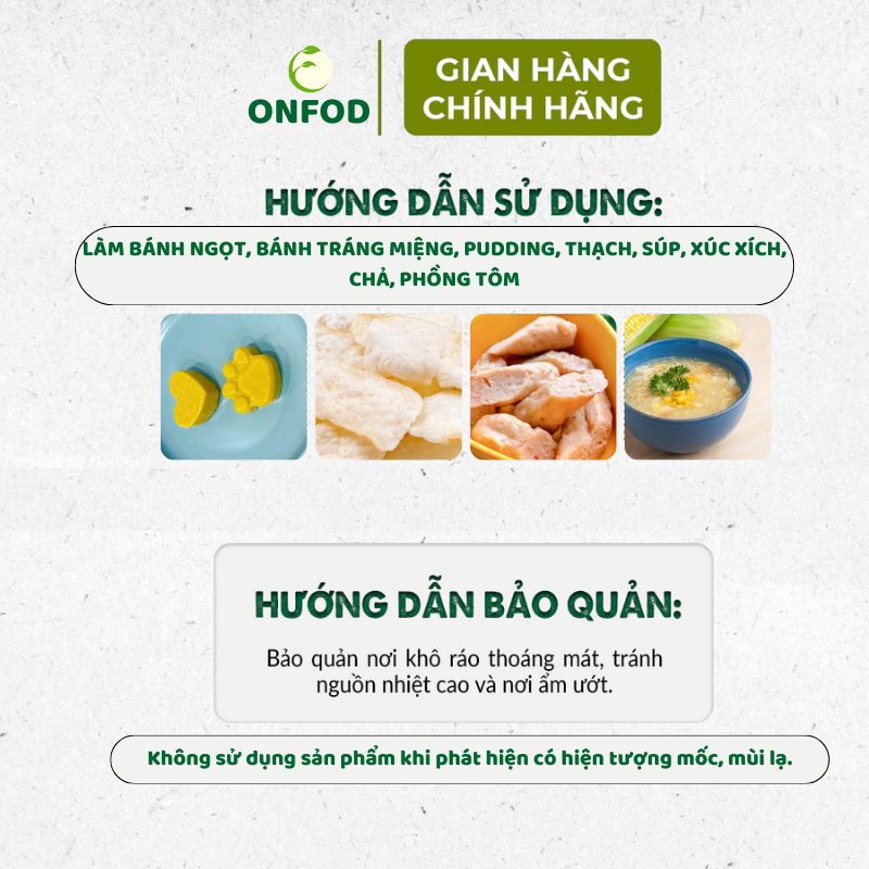 パンやケーキの生地作りに使用する。スープやお粥のとろみ付けとして活用する。お菓子作りの基本材料として使用する。