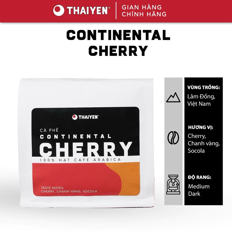 THAIYEN CAFEの「コンチネンタルチェリー」は、ベトナムのラムドン高原で厳選された100%アラビカ種の挽き豆コーヒーです。チェリー、レモン、チョコレートの繊細なアロマが特徴で、独特の甘みと穏やかな苦味が長く続く後味をもたらします。
