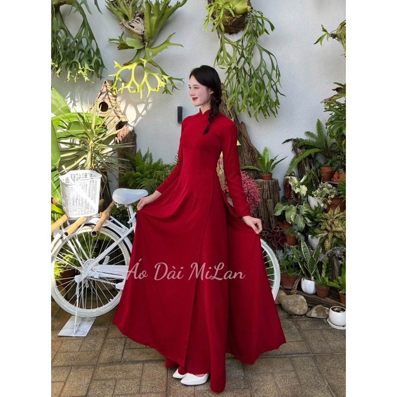 ÁO DÀI LAN'S High-Quality Silk Ao Dai 3cm High Collar Long Sleeve Pants Set 140cm 105cm Adjustable Length MADE IN VIETNAM