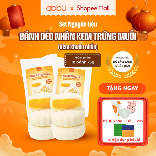 ABBY DIY Mochi Mooncake Set - Salted Egg Cream & Shredded Salted Egg Yolk Filling - With Gifts (Yields 10 cakes, 75g/cake)
