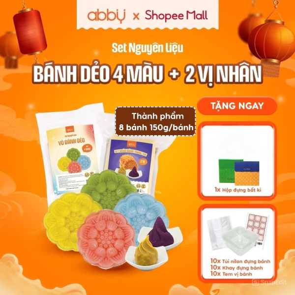 [ABBY GIFT BOX] Mooncake Mochi (Bánh Dẻo) DIY Kit - Traditional & 4-Color Skins, 2 Fillings - Makes 8 Cakes (150g/cake)