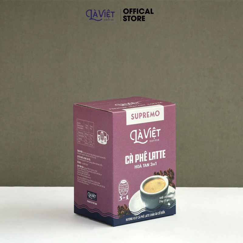 LÀ VIỆT Supremo 3in1 Instant Coffee Latte, Box of 12 sachets