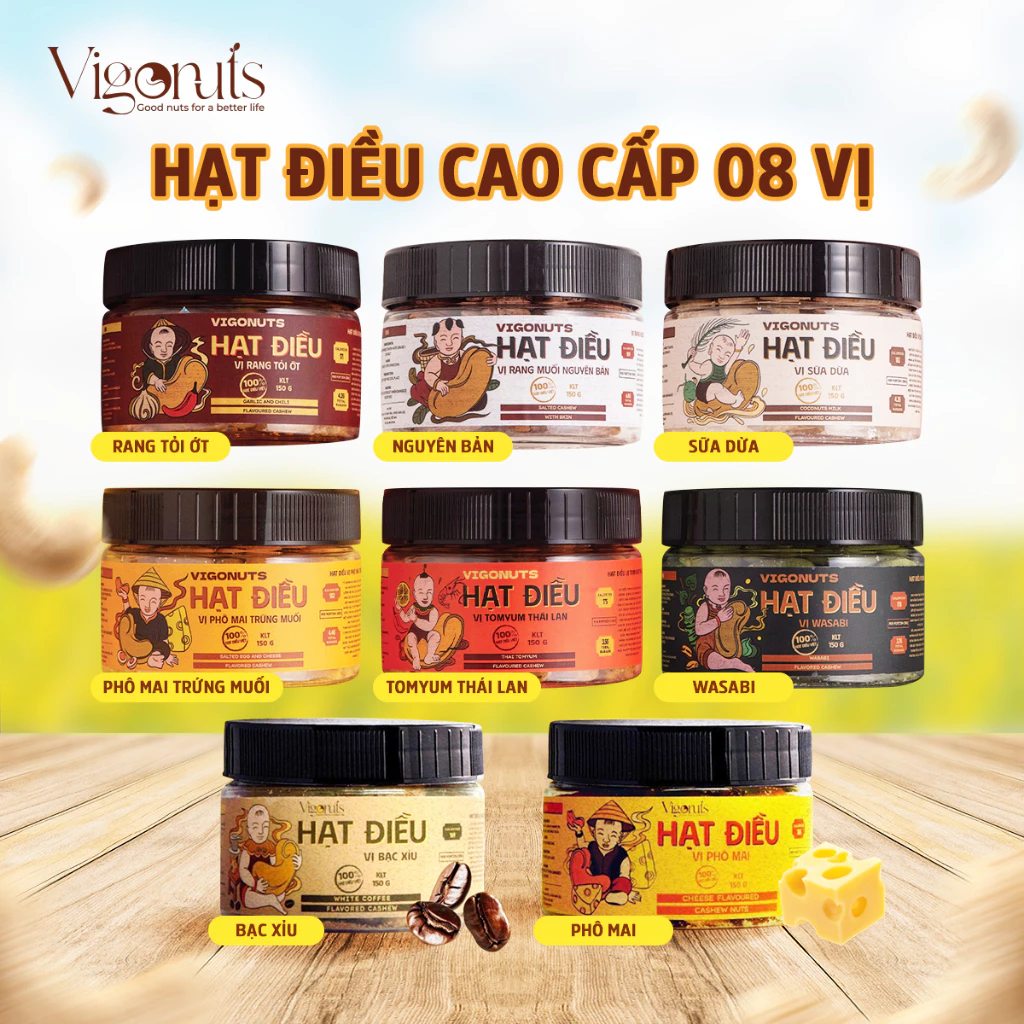 「VIGONUTS 高級チーズ味カシューナッツ」は、ベトナム産の上質なカシューナッツを厳選し、チーズの濃厚な風味で仕上げたプレミアムスナックです。