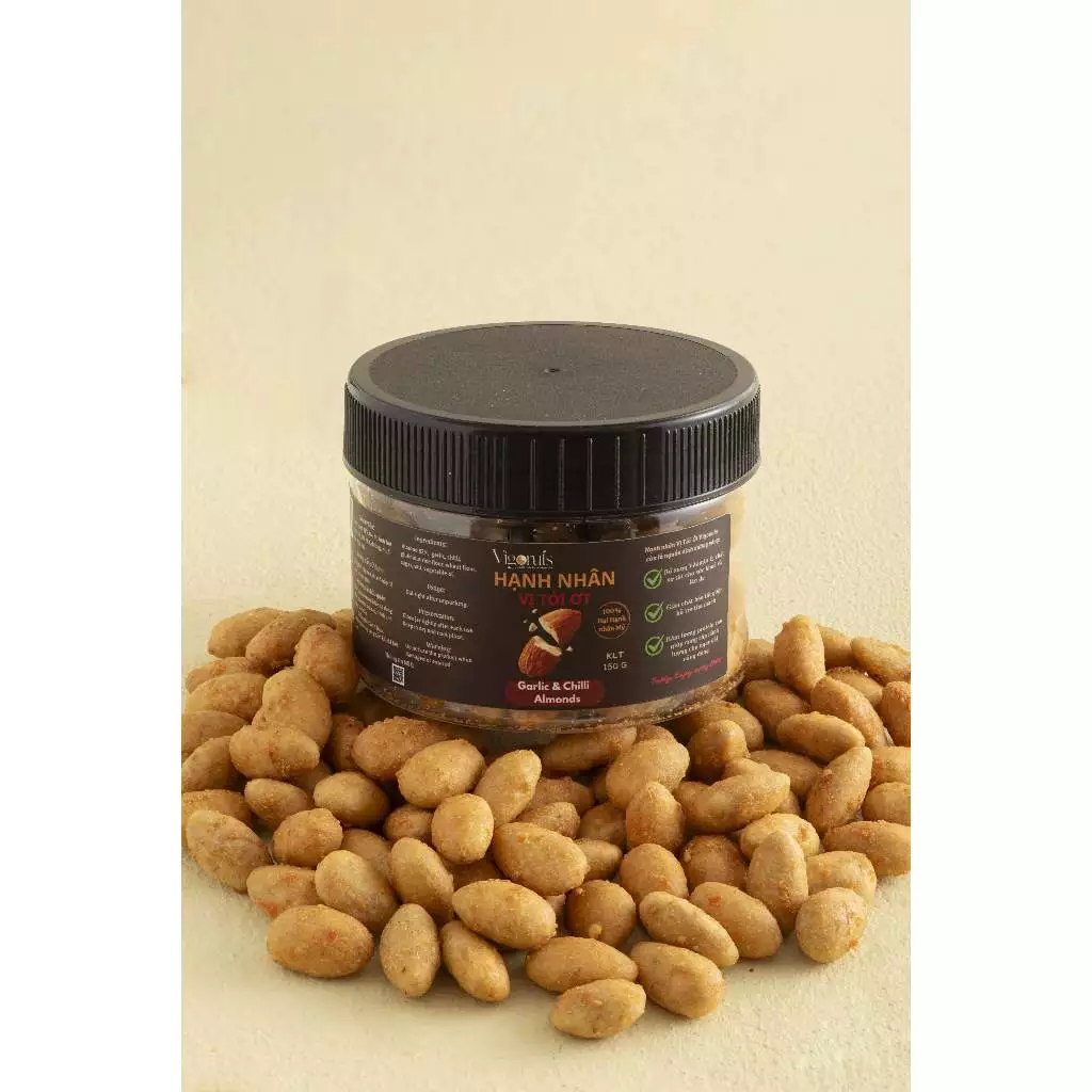 VIGONUTS Roasted Whole American Almonds with Spicy Garlic Chili Flavor - Healthy Diet Snack 150g