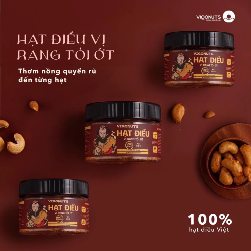 「VIGONUTS 激辛ガーリックチリ味 ローストカシューナッツ」は、ベトナムの豊かな大地で育まれた厳選カシューナッツを、風味豊かなガーリックチリと甘辛い調味料で丁寧に味付けした、絶品スナックです。