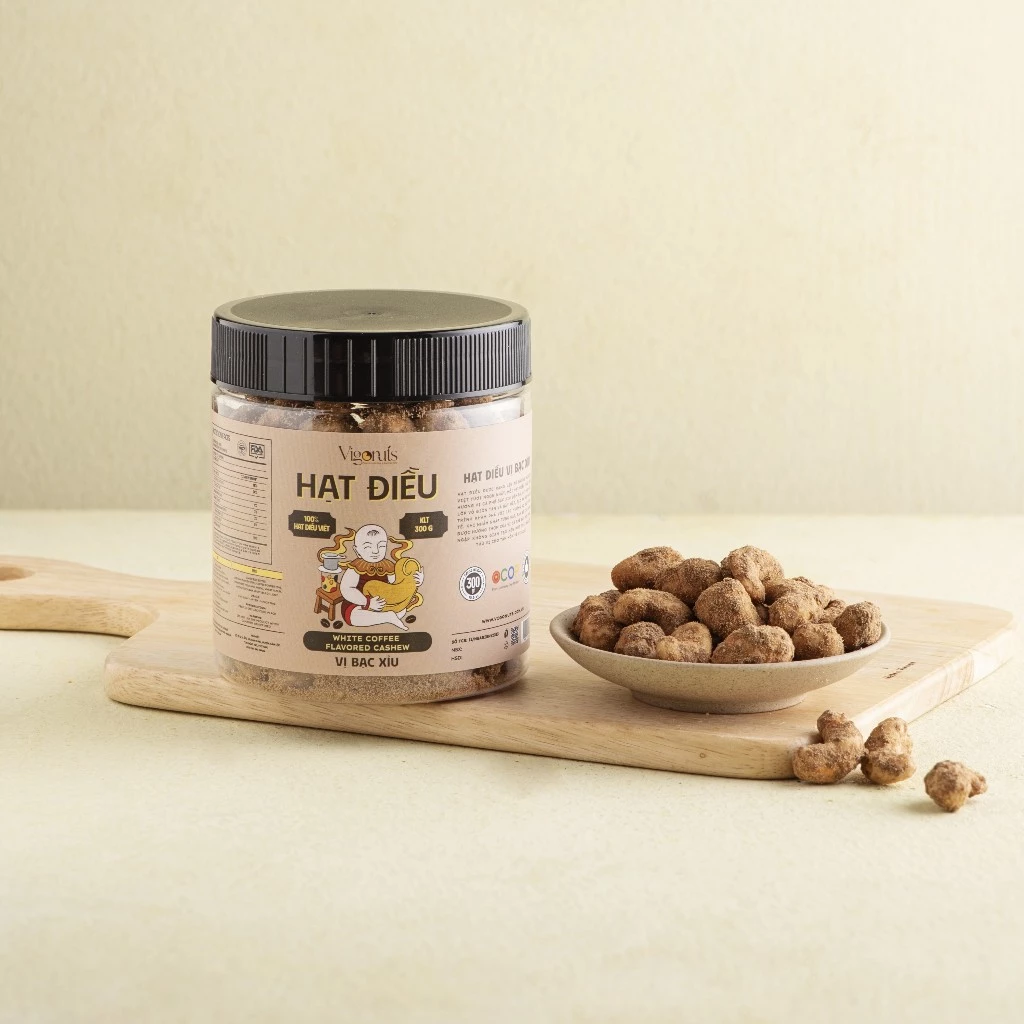 VIGONUTS Bac Xiu Coffee Flavored Cashew Nuts 300g | Rich Aroma Whole Cashews