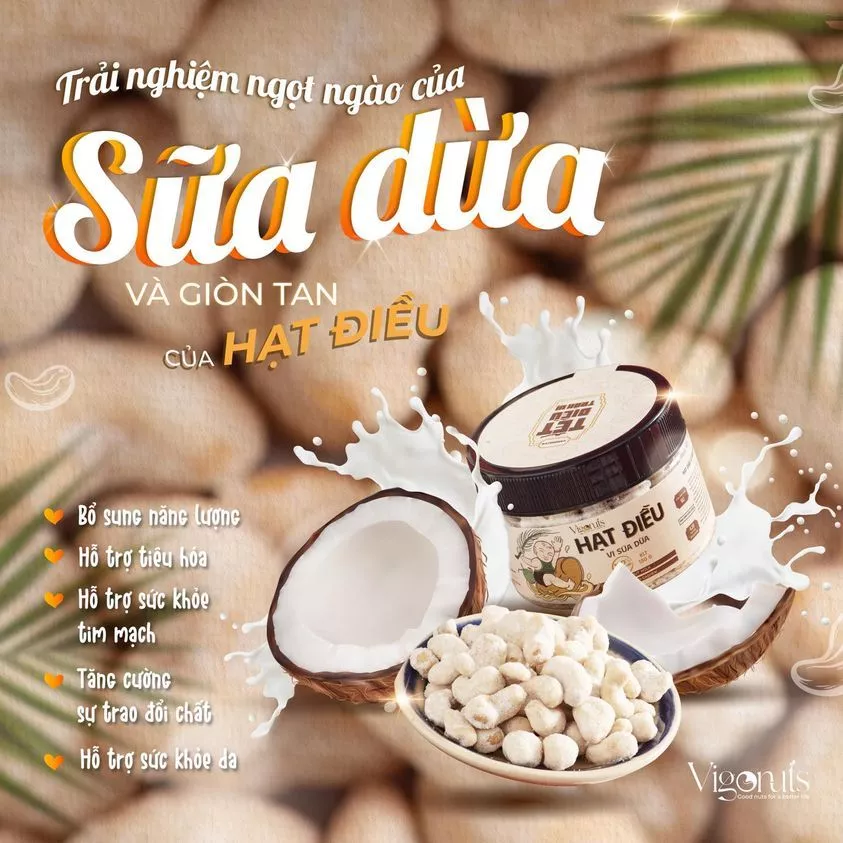 VIGONUTS ココナッツミルク風味カシューナッツは、ベトナムの豊かな大自然で育まれた厳選カシューナッツを使用し、最新技術で丁寧に焙煎。一口食べれば、カリッとした心地よい食感と、じゅわっと広がる濃厚なココナッツミルクの香りがたまらない逸品です。練乳、ココナッツミルク、ココナッツフレークを独自の黄金比でブレンドした特製シーズニングで味付けされており、カシューナッツ本来の旨味とココナッツの甘くまろやかなハーモニーが絶妙です。