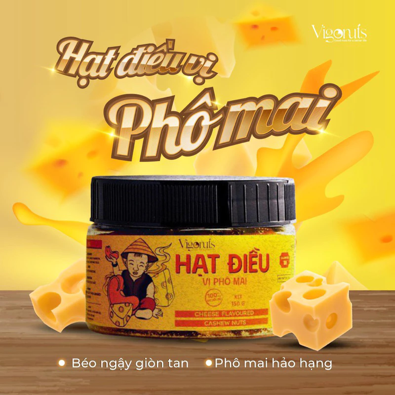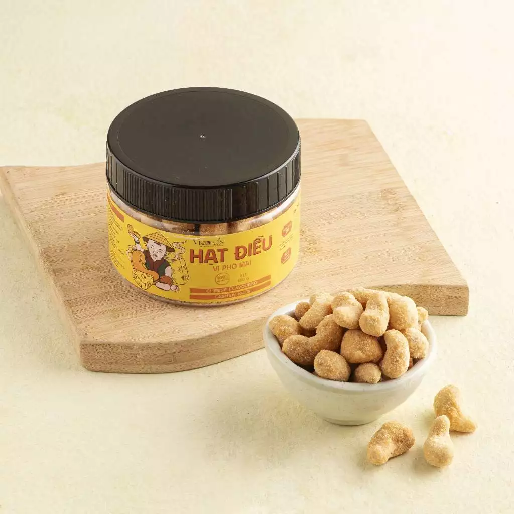 「Vigonuts プレミアムホールカシューナッツ チーズ味 150g」は、ベトナムが誇る高品質なカシューナッツを使用した、風味豊かなヘルシースナックです。