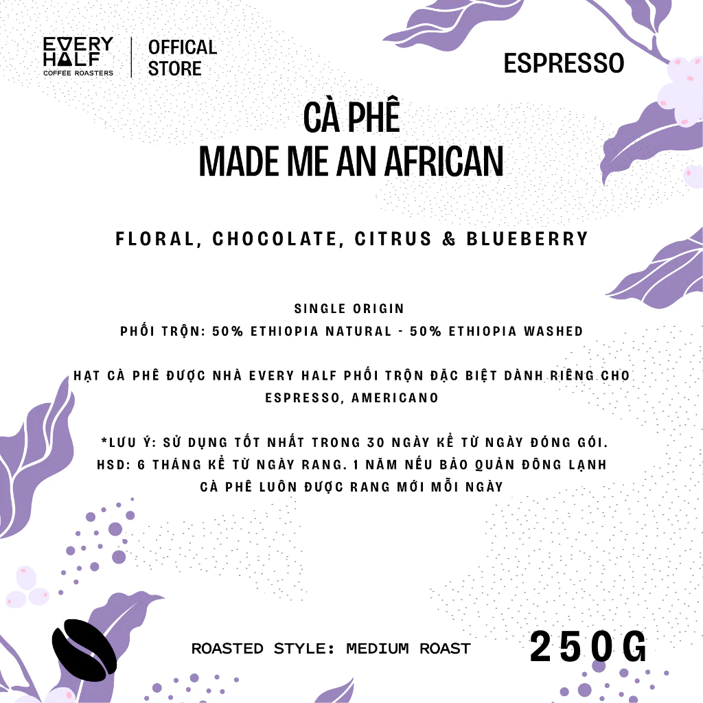 Every Half "Made Me An African" Ethiopian Specialty Arabica Fine Ground Coffee for Espresso - 250G