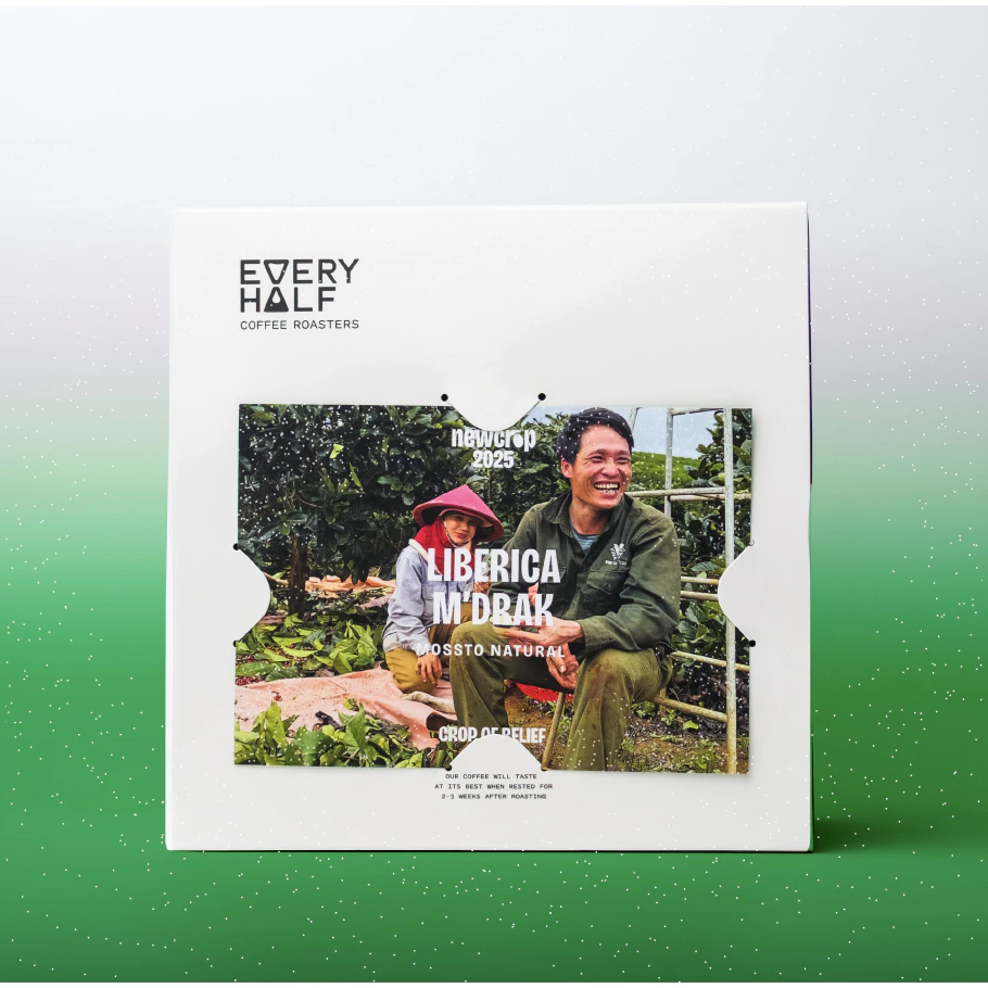 Every Halfが贈る「M'Drak リベリカ種スペシャルティコーヒー粉 - ニュークロップ2025」。リベリカ種、通称「コーヒーのミツバチ」とも呼ばれるこの希少な品種は、Every Halfが最高級の品質基準で丹念に育成した特別なコーヒーです。