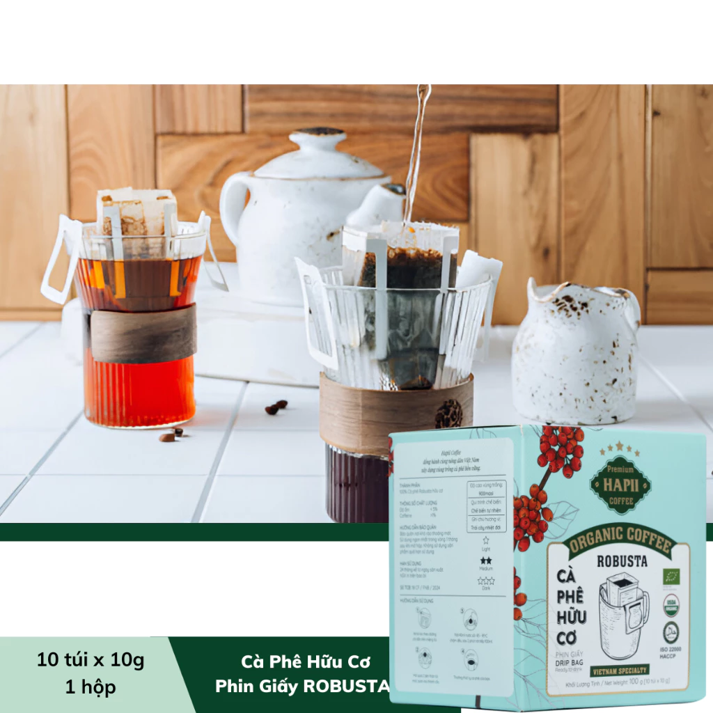 「オーガニック ロブスタ ドリップバッグコーヒー」は、ベトナムの伝統的な濃厚なコーヒーの味わいと、現代的な手軽なドリップバッグ(Drip Bag Coffee)スタイルを完璧に融合させた商品です。