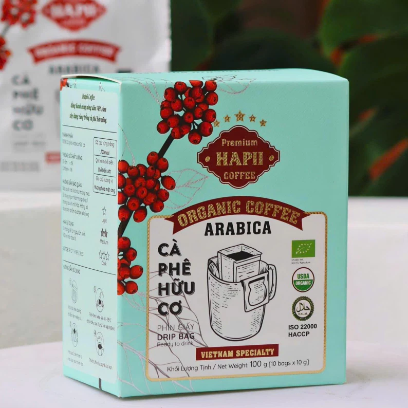 「ハピイコーヒー オーガニックアラビカ ドリップバッグコーヒー」は、高品質なコーヒーをいつでもどこでも手軽に楽しめる画期的なソリューションです。伝統的なベトナムのフィルター式コーヒー(phin)をヒントに、スマートなドリップバッグ(濾紙パック)形式で設計されています。