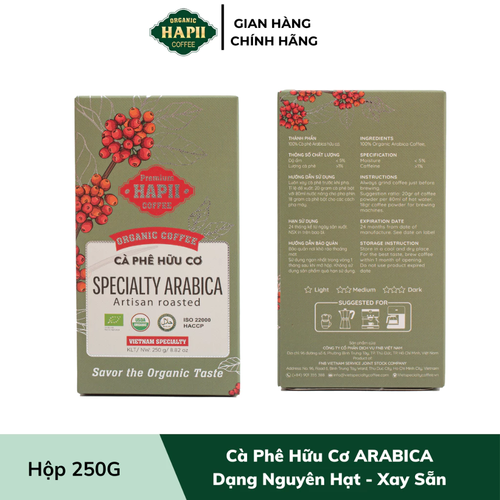 Hapii Coffee | Organic Specialty Arabica Whole Bean Coffee Artisan Roasted 250G