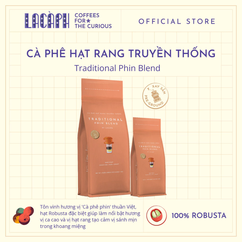 Lacàph Traditional Phin Blend 100% Robusta Dark Roast Fine Ground Coffee for Phin Filter - Authentic Vietnamese Product 1000g