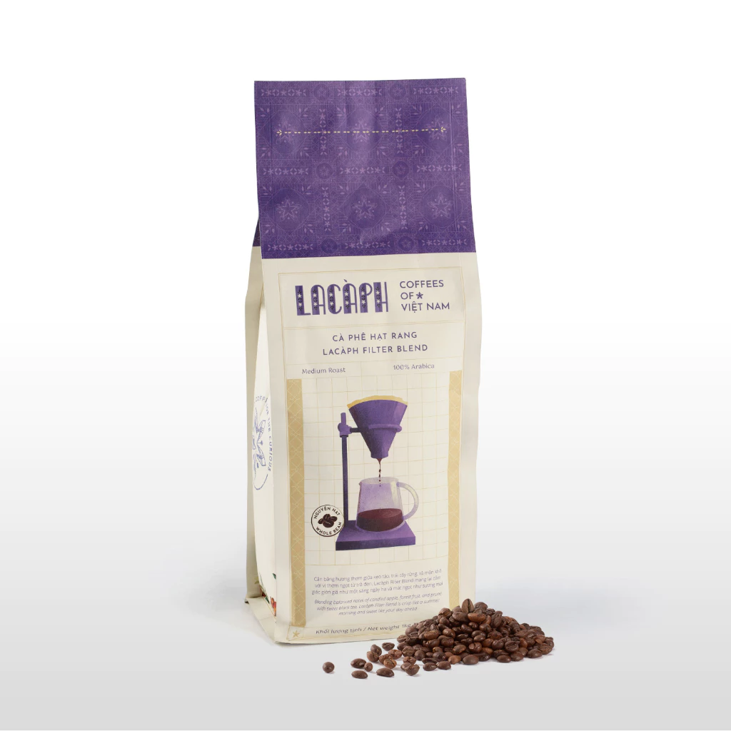 Lacàph Filter Blend 100% Arabica Whole Beans (1000g) - Medium Roast Specialty Coffee for Pour Over & Cold Brew, Made in Vietnam