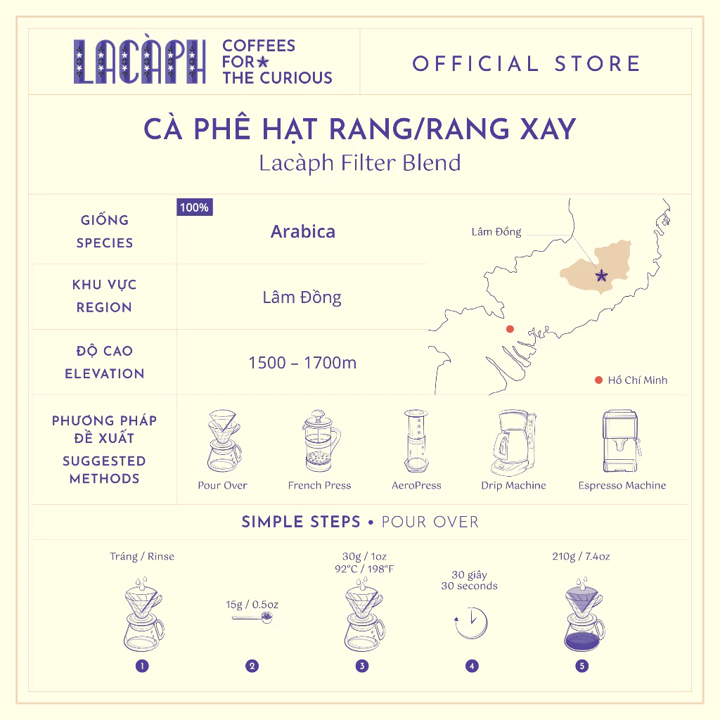 「Lacàph Filter Blend アラビカ種100% 挽き豆コーヒー」は、ベトナムのプレミアムコーヒーブランドLacàphがお届けする、手淹れコーヒー愛好家のための逸品です。