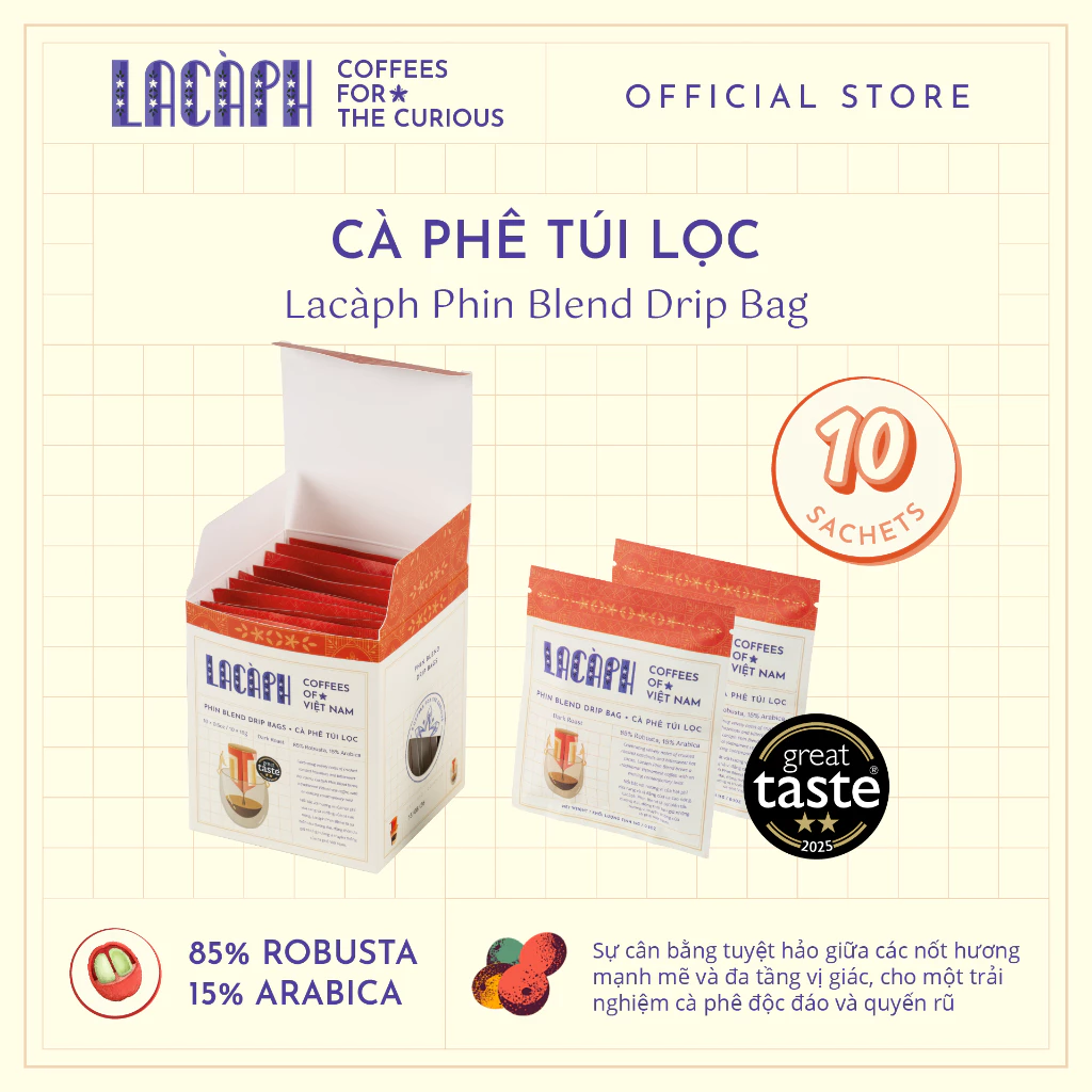 Lacàph Phin Blend Dark Roast Drip Bag Coffee 10-Pack - Convenient Vietnamese Filter Coffee