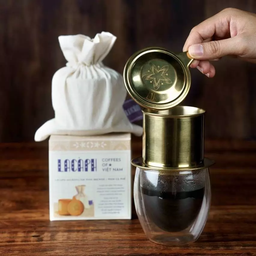 Vietnam Phin Coffee Set: Lacàph Pure Ground Dark Roast Coffee 250g & Improved Phin Brewer - Authentic Official Product