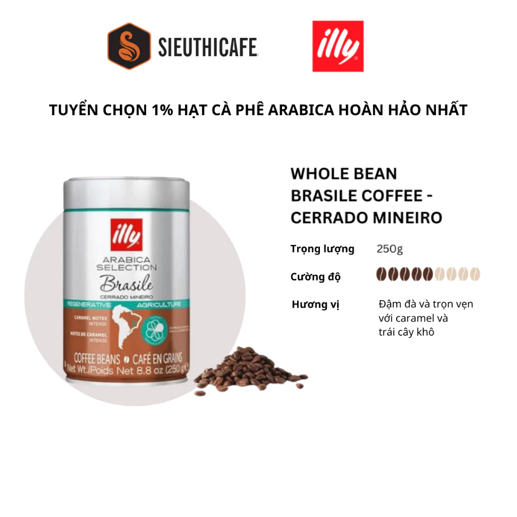 Illy Arabica Selection Brazil Whole Bean Roasted Coffee - 250g, Imported from Italy