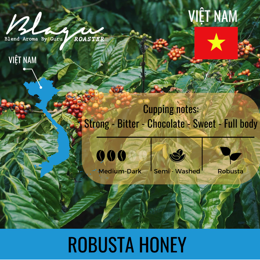 「Blagu ロブスタハニー エスプレッソ挽き豆」は、ベトナム産ファインロブスタをハニープロセスで丁寧に処理し、中煎りで仕上げたスペシャルティコーヒーです。250g入り。