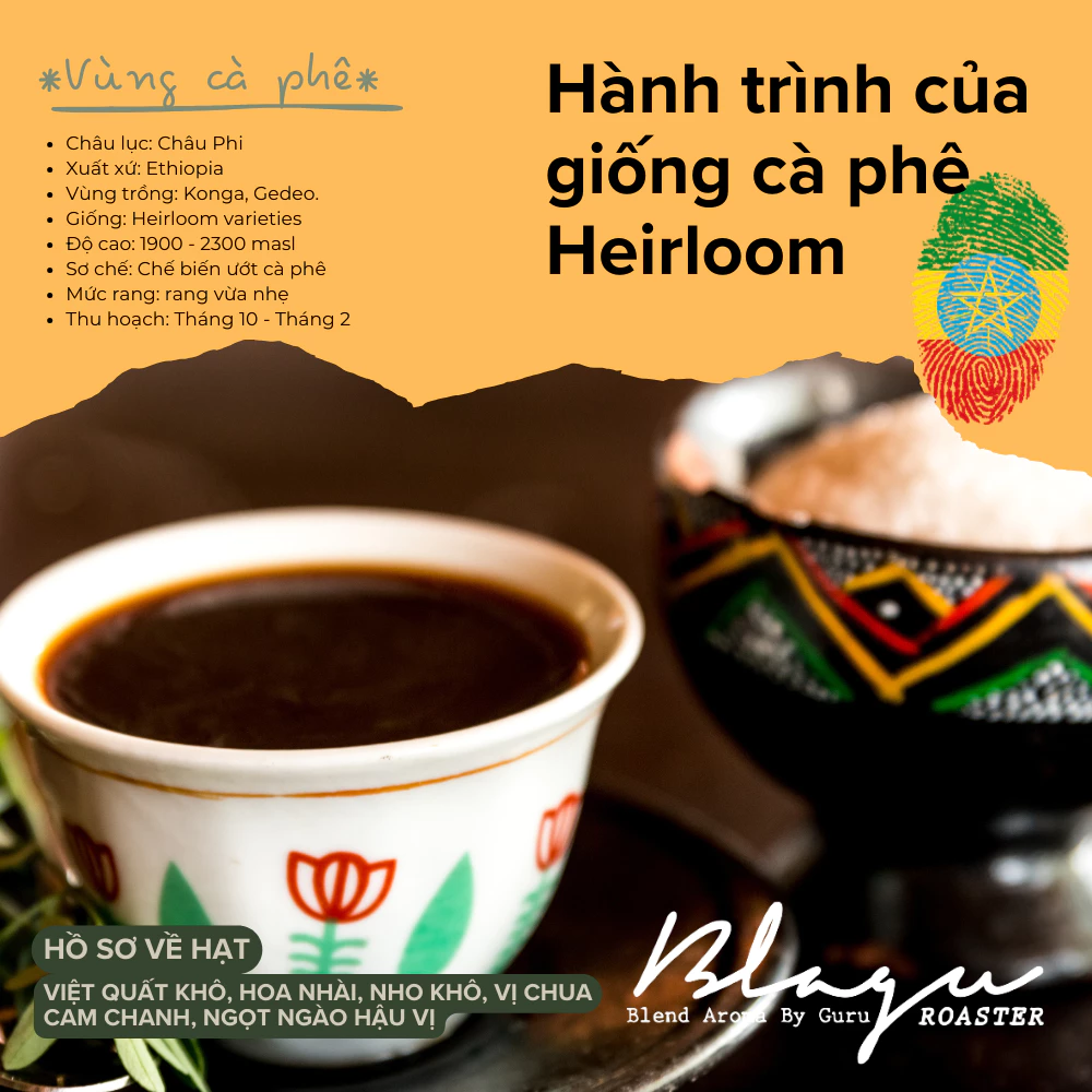Blagu Ethiopia Washed Yirgacheffe 100% Arabica Light-Medium Roast Ground Coffee (Phin Brew) - 250g