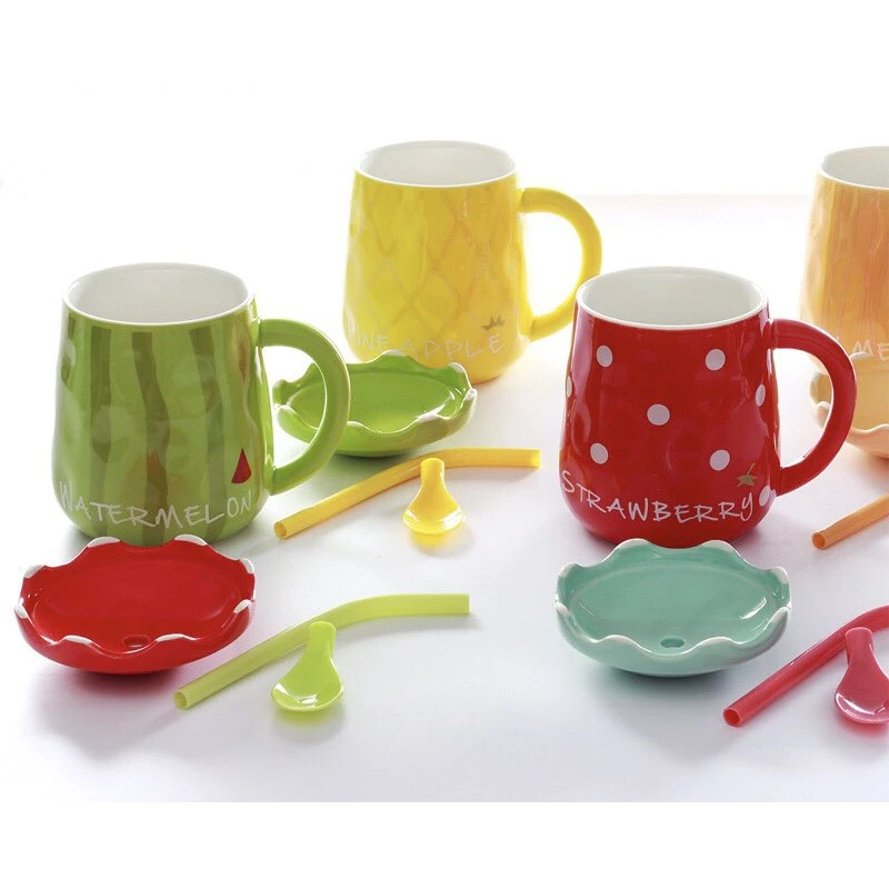 【高級】可愛いオレンジ型セラミックマグカップ 蓋・ストロー付き 子供も大人も楽しめるおしゃれな食器の通販・個人輸入代行販売商品
