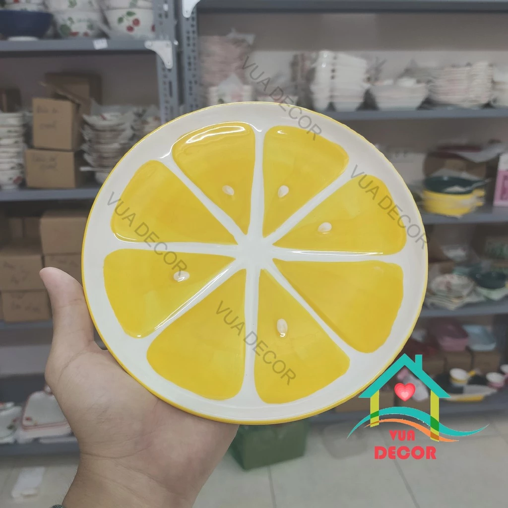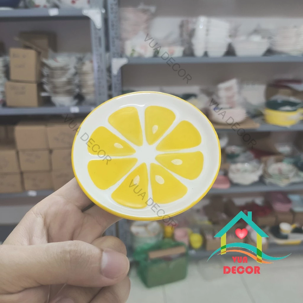- 色合い:メインカラーは鮮やかなイエローで、光沢のある釉薬が施されており、食卓を明るく彩ります。レモンのスライス、果肉、皮の繊細な模様が特徴的なデザインです。