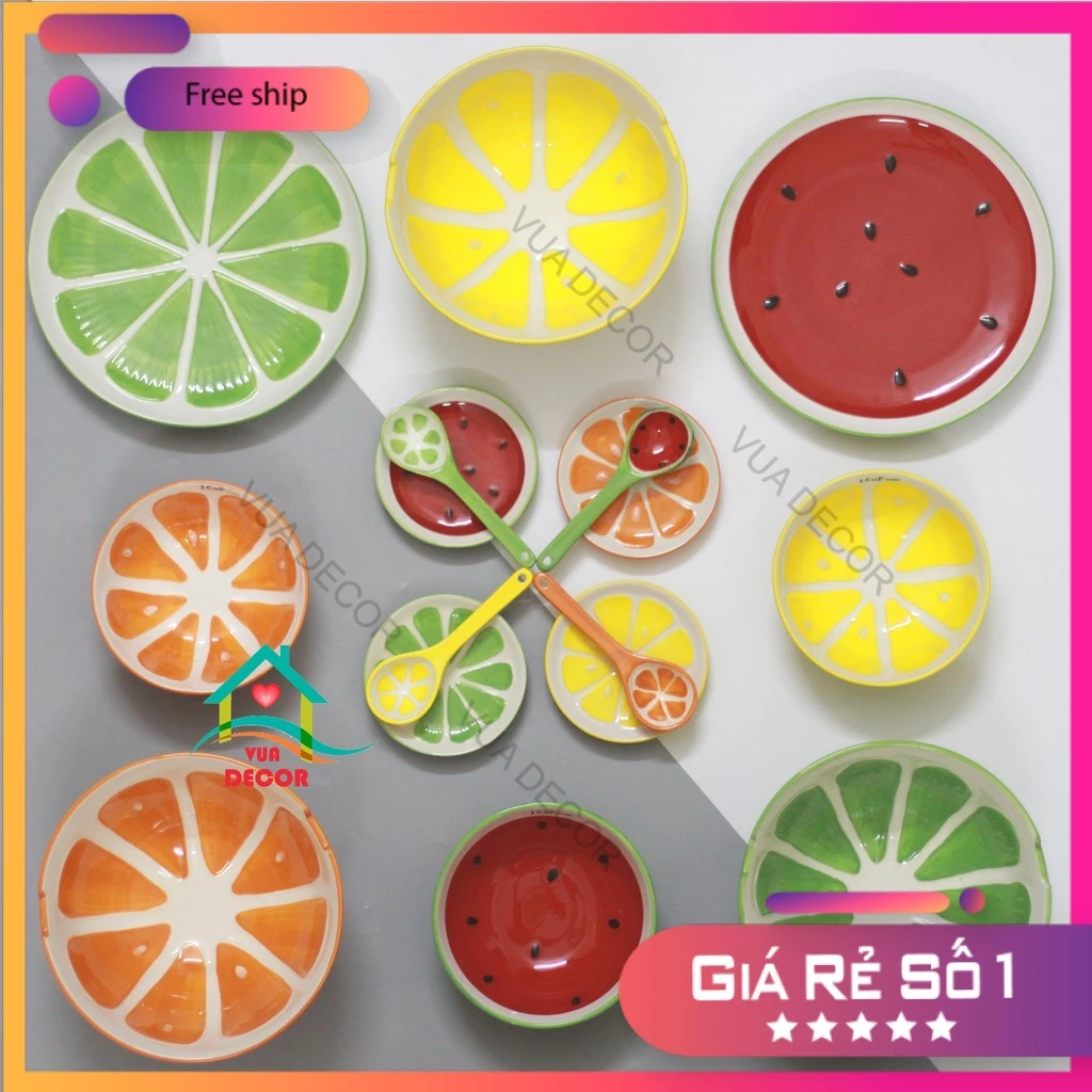 Premium Ceramic Lemon Orange Dinnerware Set - Rice Bowls & Plates - Cute & Decorative
