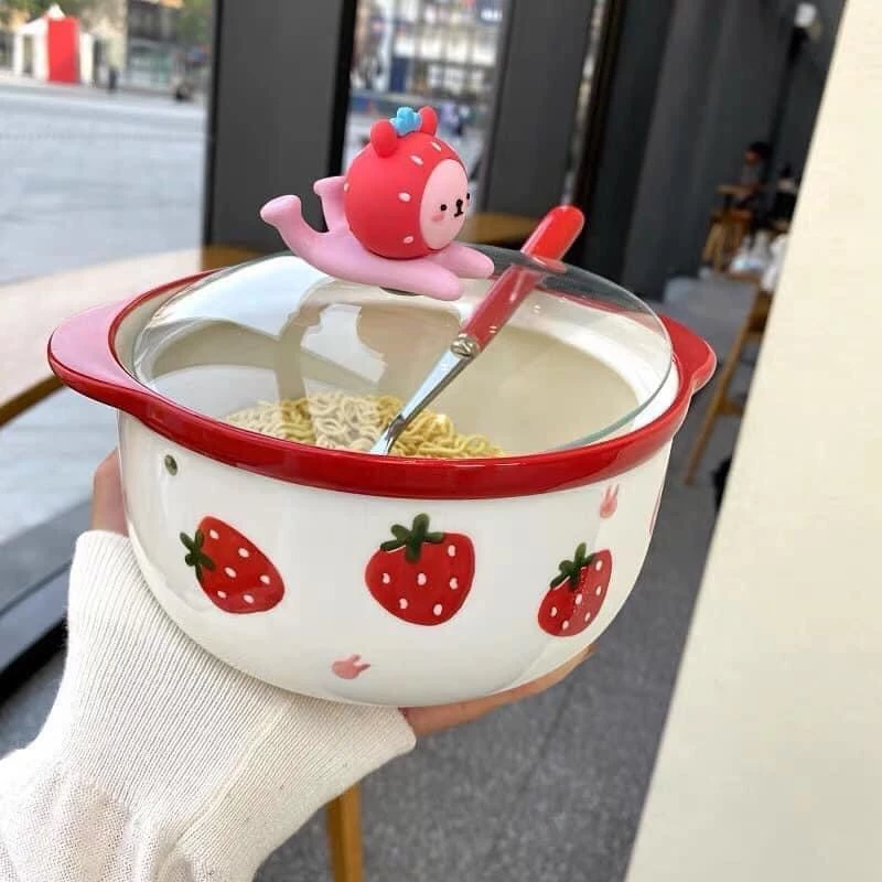 いちごクマの蓋付きミニ鍋ボウル - 食卓を彩るキュートなデコレーションごはん茶碗の通販・個人輸入代行販売商品
