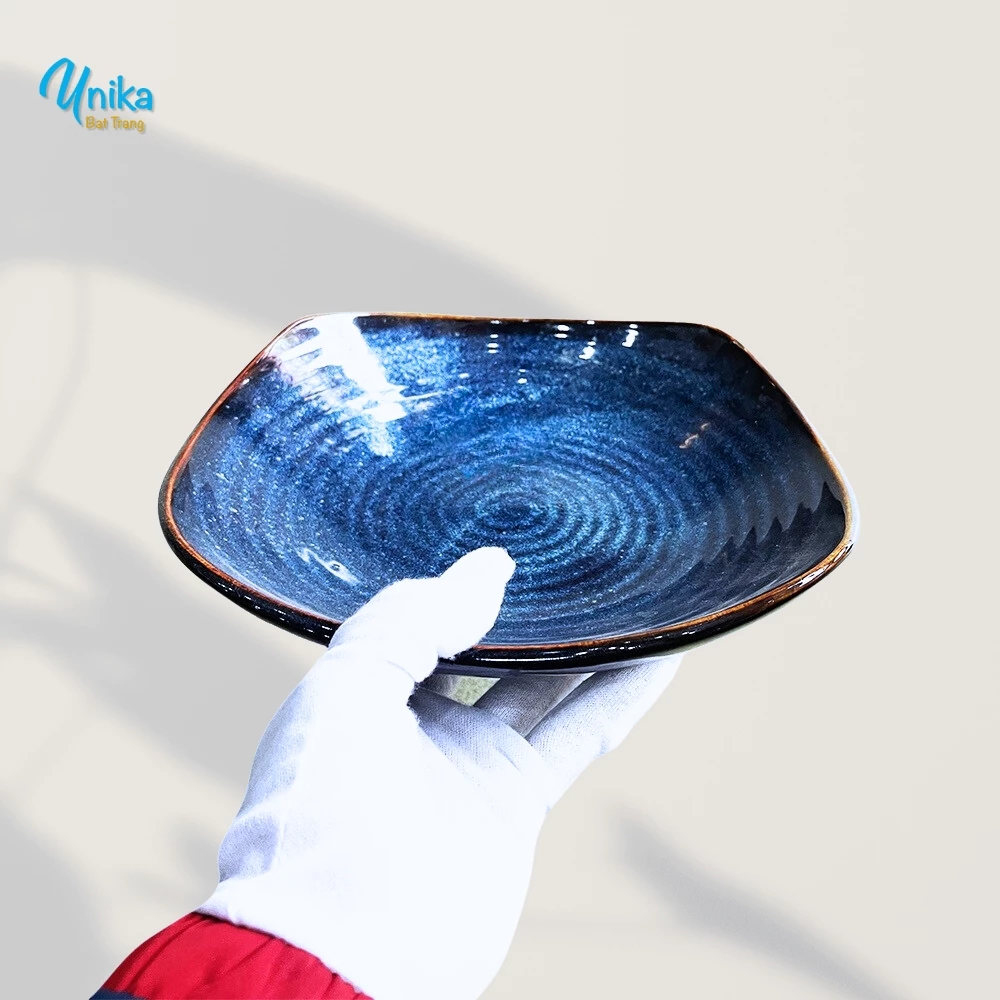 「バッチャン焼 イリュージョンスクエア サラダプレート D26」は、ベトナムの伝統的な陶器の里、バッチャン村で丹精込めて作られた、直径26cmのユニークなサラダ皿です。高級ホテルやレストランの洗練された食空間のために特別にデザインされました。その名の通り、「イリュージョンスクエア(幻想的な四角)」という形状は、料理に現代的で芸術的なタッチを加え、ゲストの記憶に残るダイニング体験を演出します。