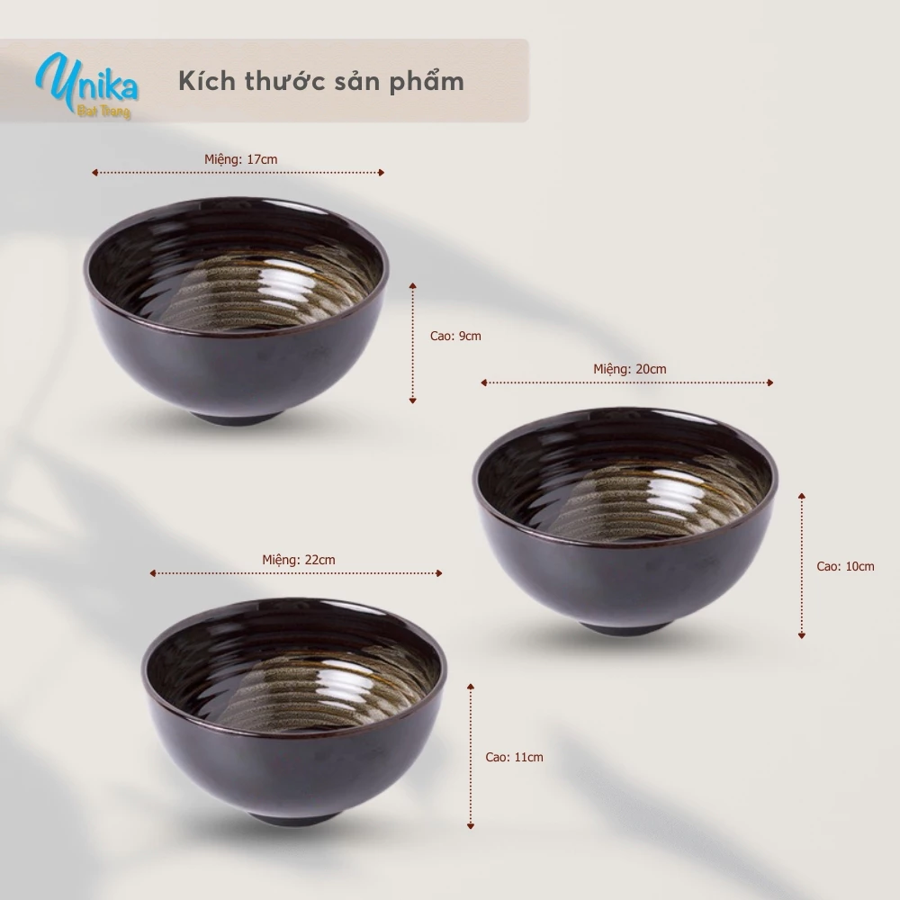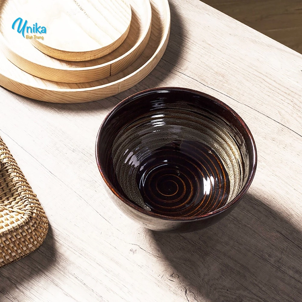 High-Grade Bat Trang Ceramic Deep Bowl - D17cm x H9cm Flame-Glazed Reddish-Brown Cup-Style Japanese-Inspired Bowl