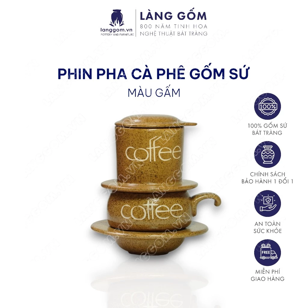 Bat Trang 'Hoa Bien' Glazed Ceramic Coffee Phin & Handled Mug Set, Multi-Color - Làng Gốm