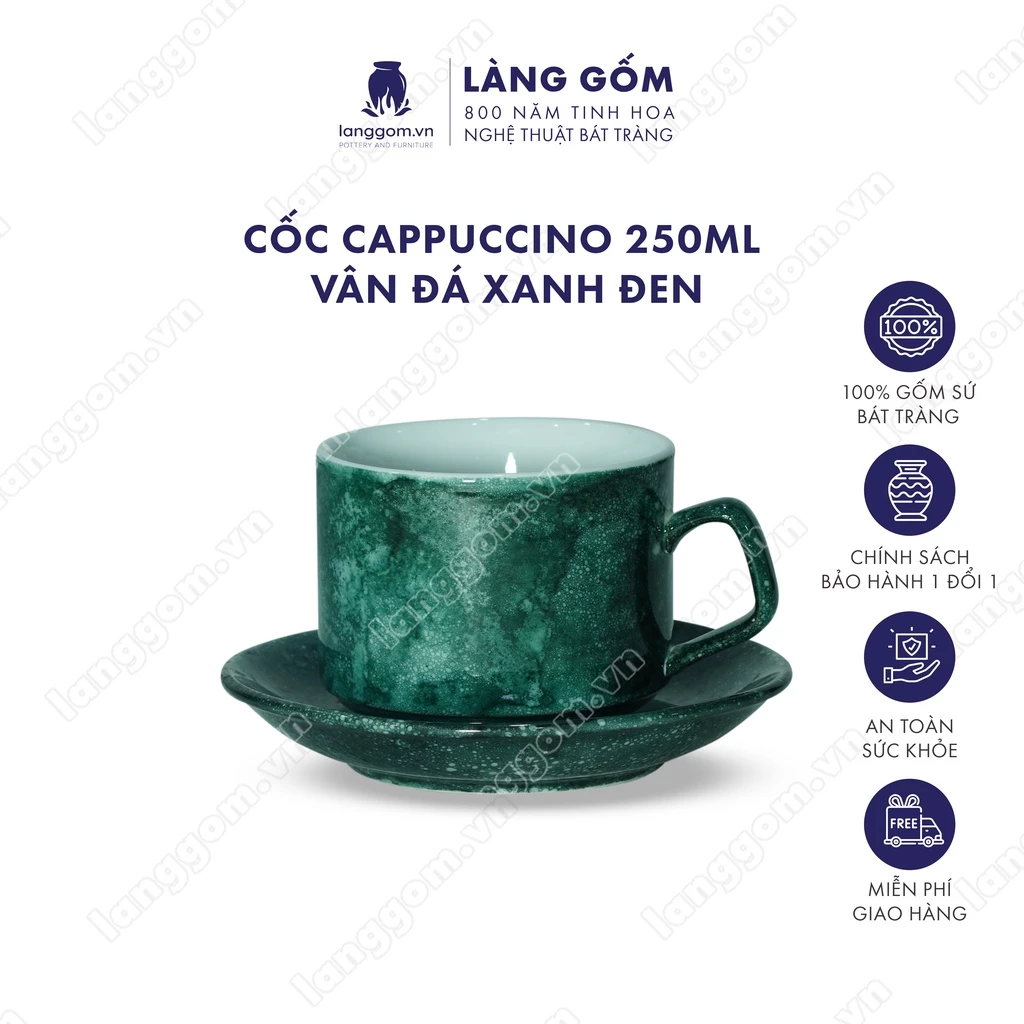 High-End Bát Tràng Ceramic Stone Pattern Cappuccino Cup & Saucer Set - 250ml - LÀNG GỐM