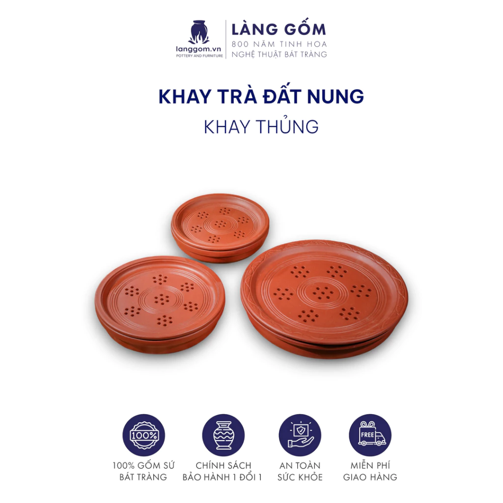 Bát Tràng Unglazed Pottery Tea Tray 'Mộc Tử Sa' - Perforated Design for Tea Sets - High-Class Vietnamese Ceramics