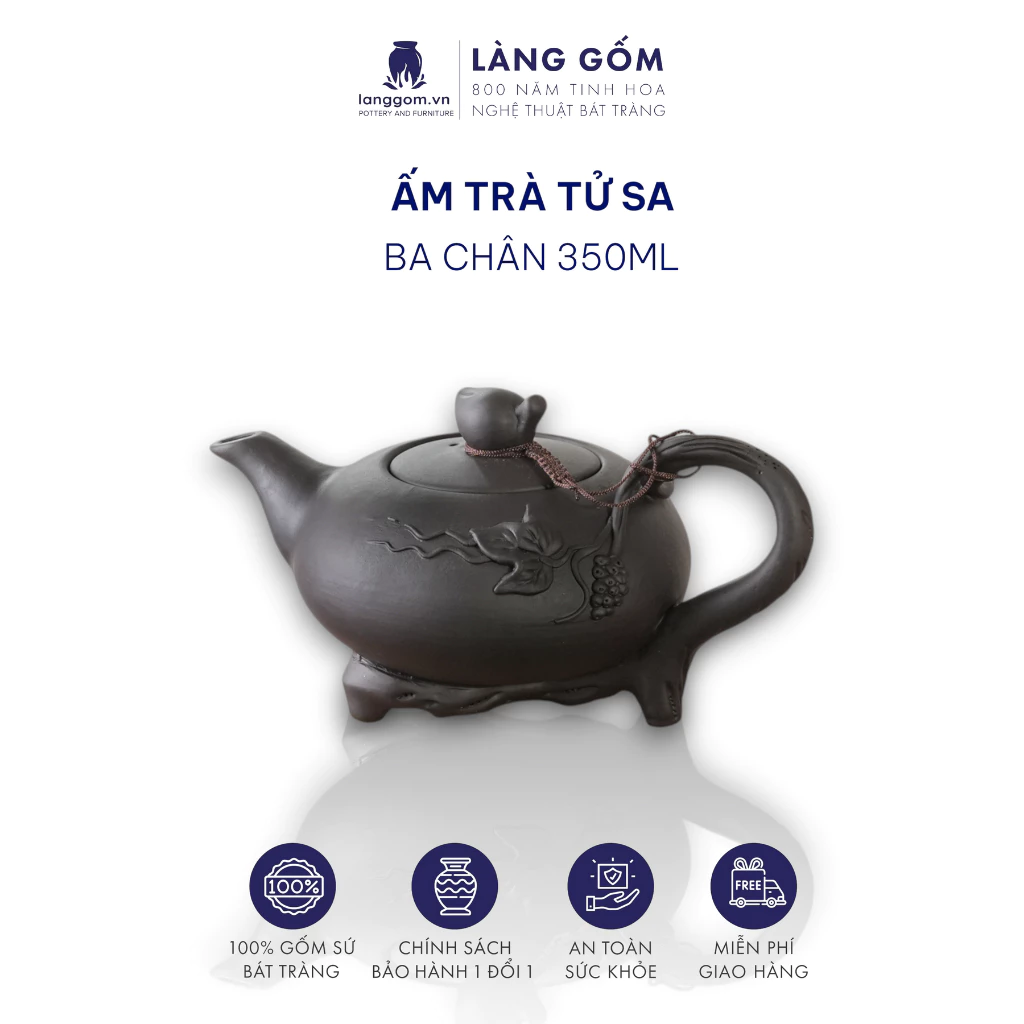 1200℃以上の高温で焼成されているため、有害物質は完全に除去されており、安心してお使いいただけます。ベトナムの伝統と職人技が詰まったこのティーポットで、至福のお茶の時間をお楽しみください。