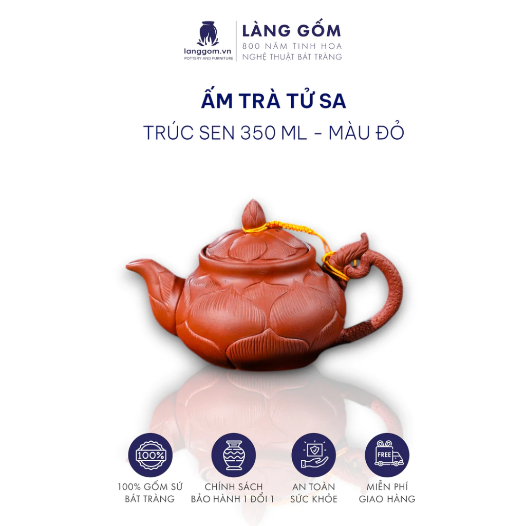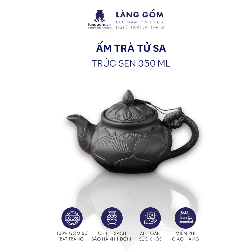 Bát Tràng Handmade Embossed Bamboo Lotus Zisha Teapot 350ml - Vietnamese Traditional Craft Làng Gốm
