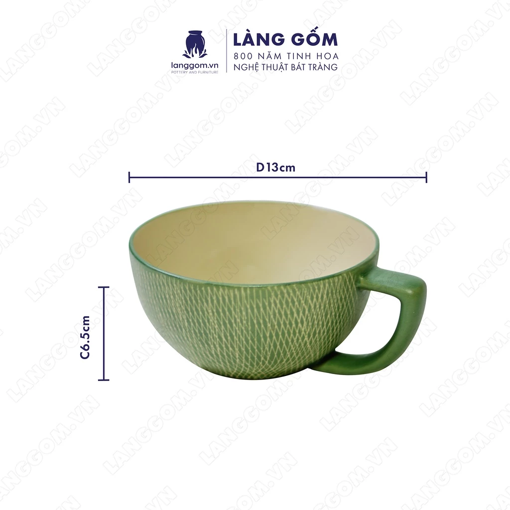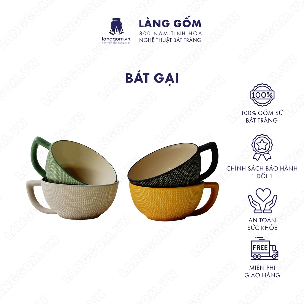 Bát Tràng High-Grade Ceramic Bowl with Handle, Handmade "Gại" Pattern (Scratched Style, Modern, Plain Color) - Làng Gốm Brand - Premium Vietnamese Pottery