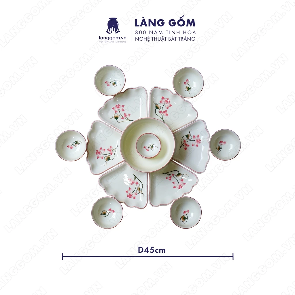 Premium Bat Trang Ceramic Sunflower Dinnerware Set - White Glaze, Hand-painted Pink Lotus - LÀNG GỐM