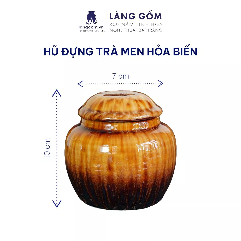 LÀNG GỐM Bat Trang High-Grade Flame-Glazed Ceramic Jar - Tea & Coffee Storage (10x7cm)