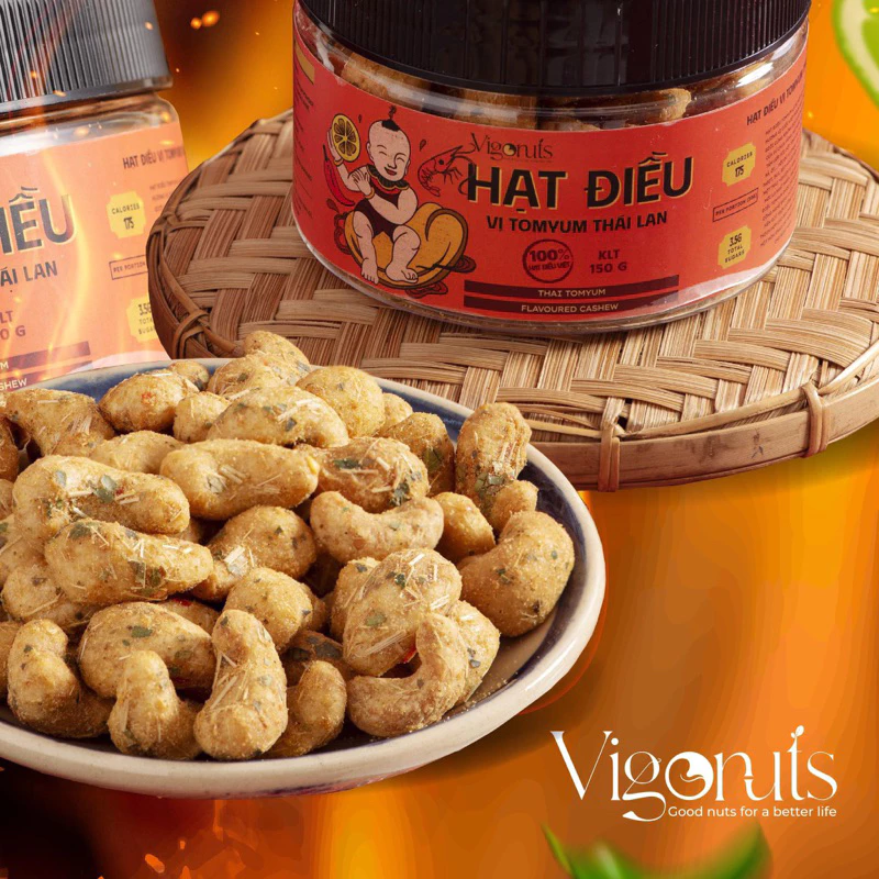 VIGONUTS Tom Yum Cashew Nuts 150g - Cholesterol-Free, Unique Tangy & Spicy Flavor Sensation