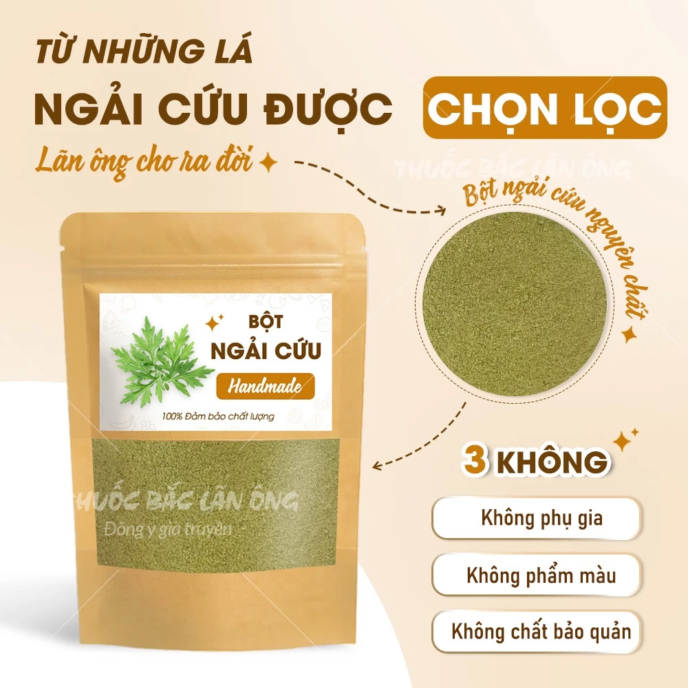 「ランオン 純粋ヨモギパウダー 100g」は、厳選されたヨモギ(学名:Ngải CứuまたはNgải Diệp)の葉を清浄し、乾燥させ、微粉末にした100%天然の製品です。古くから東洋医学において貴重な生薬とされ、「苦味があり温かい性質を持ち、経絡を温め、寒気を散らし、止血、鎮痛に用いられる」とされてきました。