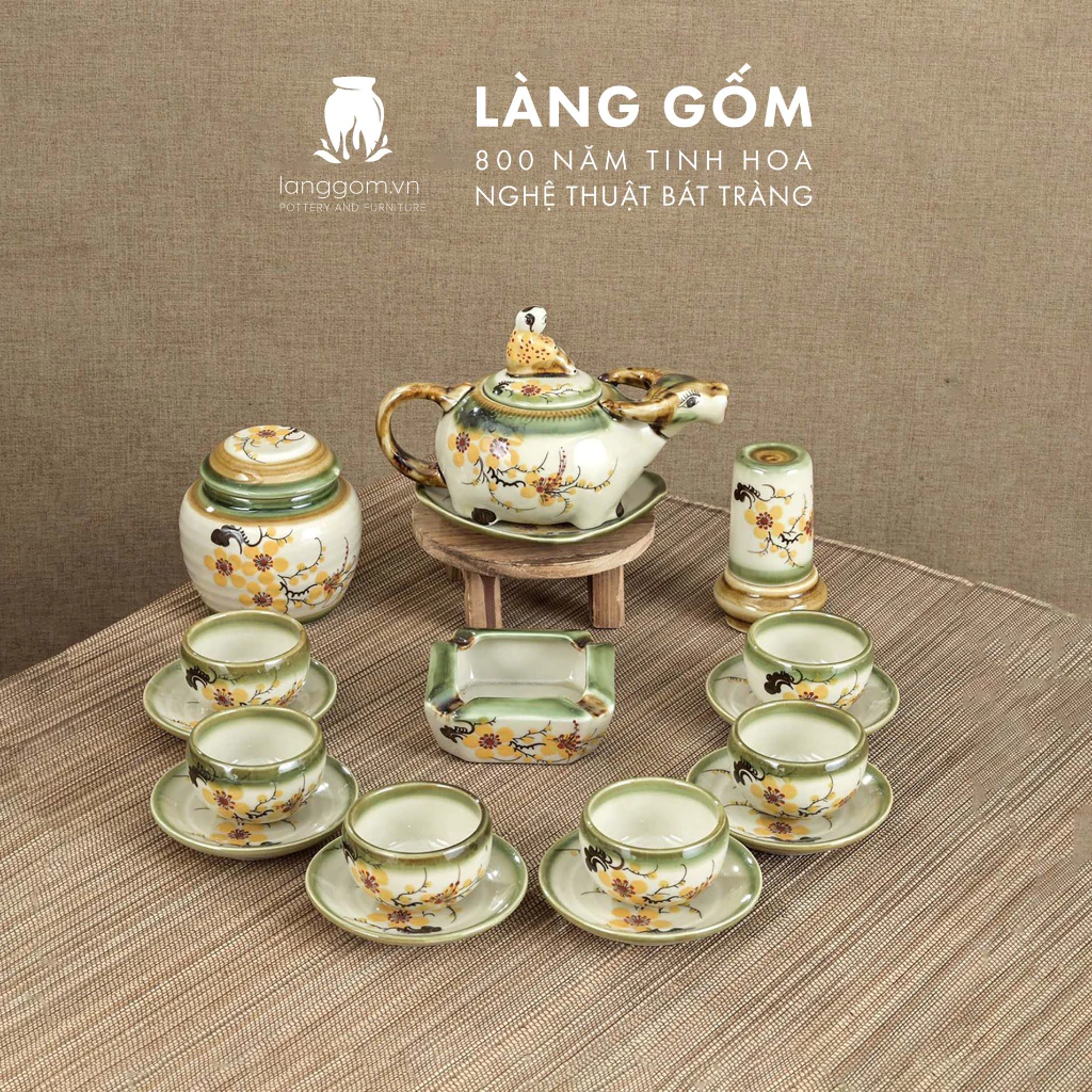 ベトナム バッチャン焼き 高級 茶器セット【LÀNG GỐM】 牛デザイン 手描き梅・桃・蓮の花柄 350ml-550ml 火変釉 贈答品の通販・個人輸入代行販売商品