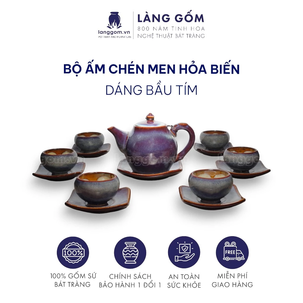 バッチャン焼き 高級窯変釉ひょうたん型ティーセット - 花模様の湯呑み (S) - Làng Gốmの通販・個人輸入代行販売商品