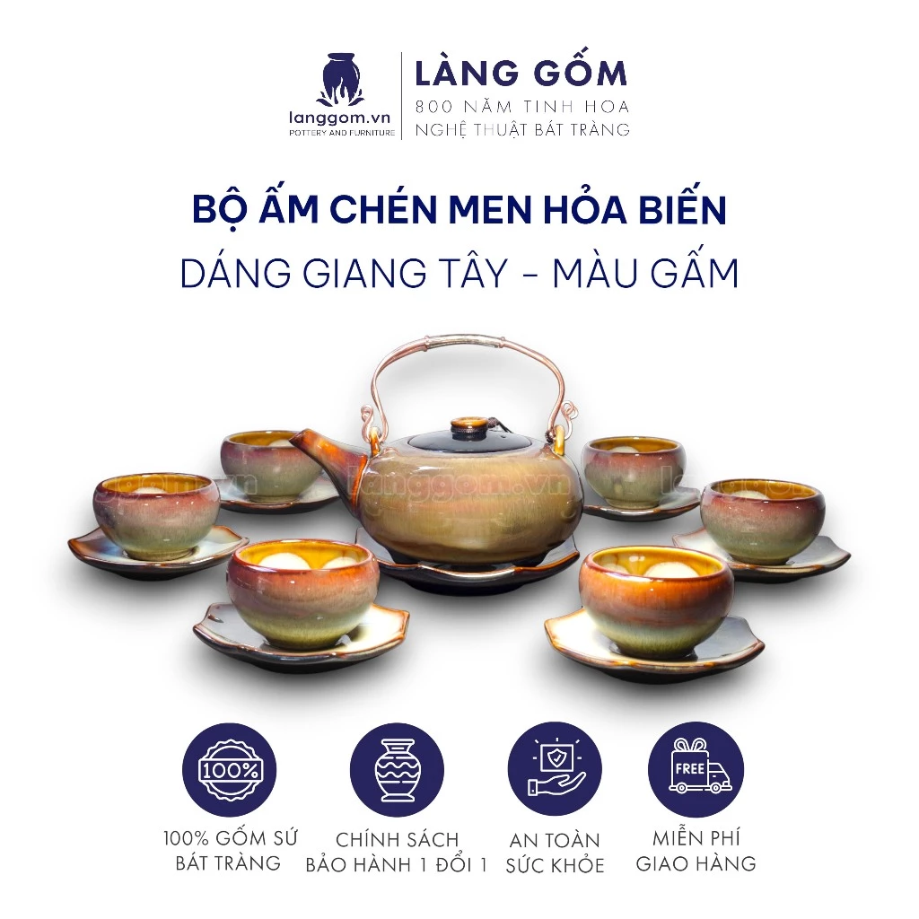 「Làng Gốm」が誇るバッチャン焼き火変釉茶器セットは、ベトナムの伝統的な陶芸技術と現代の美意識が融合した逸品です。