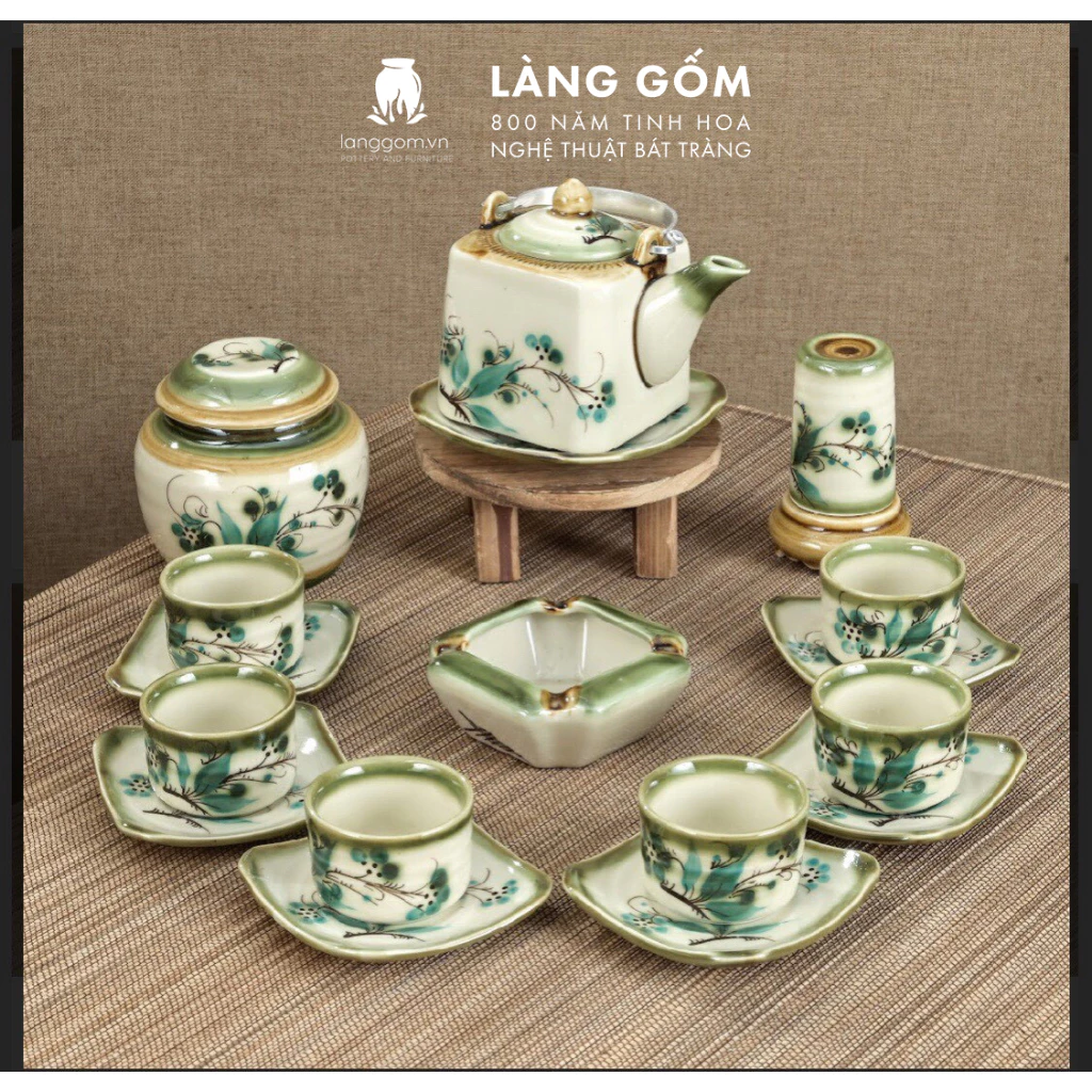 LÀNG GỐM High-Grade Bát Tràng Hand-Painted Square Tea Set with Various Patterns, 340ml-470ml