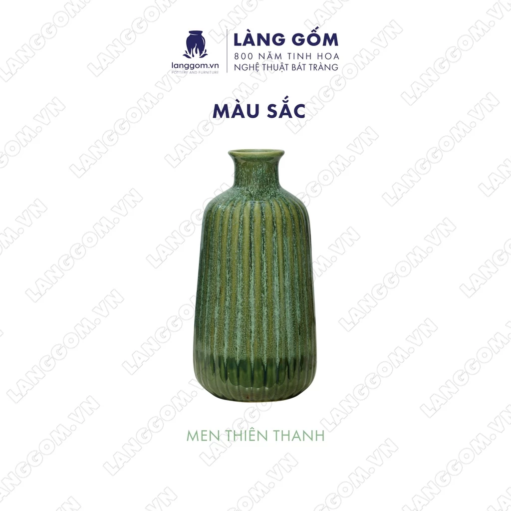 Premium Bat Trang Ceramic Vase with Chameleon Glaze (Sky Blue & Pandan Leaf Inspired) - Làng Gốm